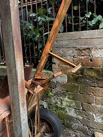 Carrello auto costruito per motocoltivatore, completamente in ferro, piano di carico 1mx1m. Necessita di gomme in quanto inutilizzato da oltre 20anni.