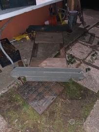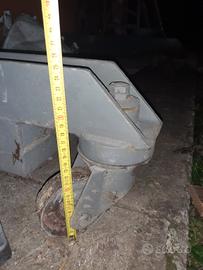 Carrello robusto interamente in metallo (credo lega di ferro) con ruote, porta certamente almeno 400 kg. Buone condizioni tutte le ruote girano liberamente. Era il carrello di una sega nastro tipo centauro da 60 cm di volano in ghisa. Contatto solo per mail. Solo ritiro a Padova Arcella, con mezzo adeguato (sponda idraulica, muletto, braccio meccanico, capretta montacarichi manuale).