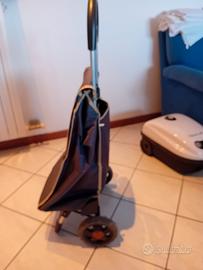 carrello per spesa, usato poche volte, in perfette condizioni, con ruote e appoggio per mantenerlo in piedi,capiente e con tasca posteriore, grigio scuro. altezza 1 mt