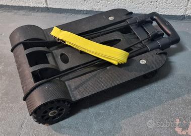 Carrello per trasporto richiudibile con cinghie ancora da aprire.