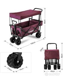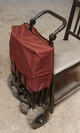 Vendo carrello pieghevole con ruote, comprato qualche anno fa , ma usato pochissimo. Completo di tettino e sacca di trasporto. piccoli segni di usura nel manico in gomma. per il resto perfettamente conservato e funzionante. Dimensioni come da foto. Prezzo non trattabile. Non spedisco.