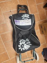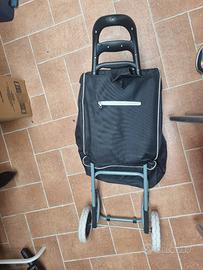 Carrello porta spesa o porta ferri cucito lana. Con ruote bianche e cerniera posteriore funziona ma l interno della ceeniera e Bucato come si vede in foto. ma dentro il carrello in buono stato