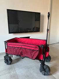 Carrello porta tutto per spiaggia/campeggio/giardino o sport. Grandi dimensioni e capienza, ruote ampie, resistenti e girevoli. Telaio in acciaio, tessuto robusto rimovibile e lavabile, manico retrattile e inclinabile, design compatto.