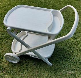 Vendo Carrello portabibite da esterno con ruote. Materiale resina, colore ghiaccio. In buono stato. Tenuto sempre in taverna. Struttura robusta, pieghevole, formato da due ripiani diversi e ruote per spostarlo. (nuovo costa 60,00 euro) Vendo causa inutilizzo a 20,00 euro (solo ritiro a mano a Legnano).