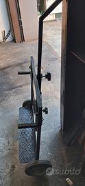 Carrello portabombole,principalmente da subacquea, ma adattabile anche ad altra tipologia. In ferro molto resistente, manico staccabile per riporlo nel baule auto comodamente.Eventuale spedizione con corriere a carico dell'acquirente. Dimensioni: cm 68x55.Appoggio bombole cm 13 lunghezza manico cm 100