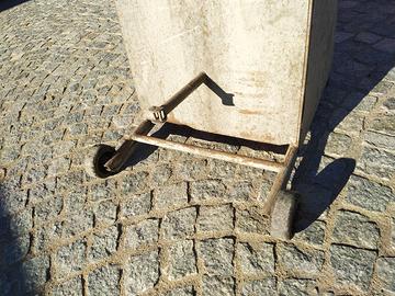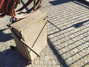 Carrello professionale usato per bombole di saldatura a cannello. Le bombole trasportate erano di 45kg. Misure del carrello: altezza 120 larghezza 58 profondità 62. Completo di ampio armadio integrato a tre ripiani con chiavistello: altezza 68 largo 47 profondo in basso 37 in centro 29 in alto 23, staffe per avvolgere i tubi, cinghie di ritegno per le bombole e ruote piene. Maniglie per il trasporto reclinabili. Utilizzato per bombola di ossigeno e bombola di acetilene. Attrezzatura usata in ambito professionale ma anche per il fai da te, eccezionale robustezza e di fattura artigianale. Consegna gratuita in Novara città. Accetto il pagamento con paypal ma la commissione di circa il 5%, sarà a carico dell'acquirente.