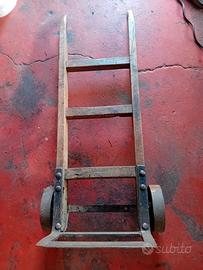 porta pacchi anni 50 in rovere e ferro/ghisa le ruote.... adatto anche come oggettistica per negozi o locali...