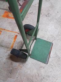 VENDESI CARRELLO PORTAPACCHI MANUALE, È UNO STRUMENTO ROBUSTO UTILE PER LA CASA E IL LAVORO, UTILIZZATO PER IL TRASPORTO DI CARICHI PESANTI O INGOMBRANTI, COME SACCHI MOBILI, PACCHI, CASSETTE ,PIANTE, ECC. È DOTATO DI 2 RUOTE PER FACILITARE LA MOVIMENTAZIONE. LA STRUTTURA È PROGETTATA PER GARANTIRE STABILITÀ E SICUREZZA DURANTE IL CARICO E LO SCARICO DELLE MERCI. PRESENTA QUALCHE SEGNO DI USURA NELLA VERNICE MA NIENTE CHE POSSA INFLUIRE SUL FUNZIONAMENTO.