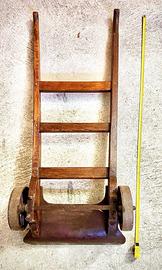 Carrello portatutto a due ruote di metallo Carrello manuale industriale, realizzato in metallo e legno. Pulito e restaurato, presenta segni d'uso, perfettamente funzionante.