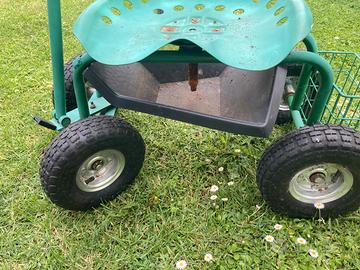 Vendo causa malattia, impossibilita d’uso Waldbeck Park Ranger Sgabello Da Giardino (Ruote, 130 Kg, Vano Per Stoccaggio Attrezzi, Sedile Girevole è Regolabile e dotato di una seduta e di un cestino portaoggetti. - Carrello in buone condizioni, presenta qualche segno di usura. - Perfetto per trasportare attrezzi e piante. - Ruote robuste per una facile movimentazione..