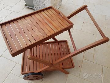 Carrello portavivande da giardino in legno tek con vassoio superiore asportabile