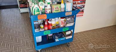 Carrello con cassetto e ripiani. Peso 23 kg. Con Ruote. Dimensioni 75.5x39.5x34. Telaio in ferro.. Comodo e sicuro. Per tutti gli usi.