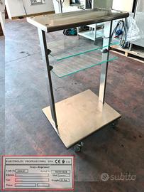 carrello self service inox e vetro usato, si tratta di un mobile prodotto da Electrolux in acciaio inossidabile con dispenser per pane appoggiato su mobile con ruote piroettanti dotato di ripiani in vetro per: vassoi, stoviglie, posate, tovagliette, e materiali di servizio. ottimo per: mense, ristorazione collettiva e tradizionale, cucine professionali, etc.
