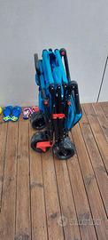 Ha una maniglia da trazione anteriore e un maniglione regolabile da spinta tipo passeggino, dotato anche i tetto parasole e freni anteriori e posteriori.