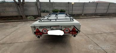 Carrello tenda montana del 2000 completo di veranda con paleria,fasce copri ruota,gavone maggiorato,porta bici..usato e tenuto molto bene .Veranda sfruttata pochissimo,disponibile per farlo vedere e se bisogno altre foto disponibili,gomme nuove anche quella di scorta più una di riserva.Pulitissimo non presenta rotture.