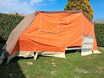 vendo per inutilizzo carrello tenda compreso di veranda perfetto per le vacanze. facile da montare, omologato per 5 persone, compreso di materassi, attrezzi per il montaggio, telo impermeabile in ottime condizioni (testato recentemente). all'interno ci sono panche per riporre vestiti e vari oggetti. misure da aperto: 6 mt x 2,5 mt misure veranda: 6 mt x 2,5 mt vendo visto e piaciuto. prezzo poco trattabile
