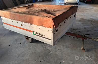 vendo a prezzo simbolico carrello tenda non utilizzabile per circolare in quanto privo di targa, ed altri particolari, fermo da svariati anni. utilizzabile come piccolo rimorchio in ambito privato, come casetta per giochi bambini od usi analoghi. Teli interni e struttura senza rotture o buchi. Il carrello chiuso misura cm 176 x 312 compreso timone. Altezza cm 110.