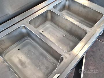 dimensioni: 124X62cm h100cm, vani 33X53cm adatti per GN1/1, vasche GN1/1 h22cm