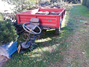 Carrello trazionato e ribaltabile per motocoltivatore Pasquali + N° 2 gomme per il motocoltivatore dello stesso diametro del carrello + se interessati giunto cardanico artigianale.