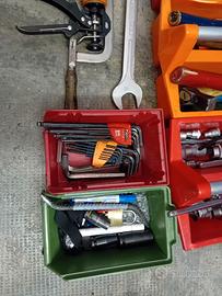 vendo causa inutilizzo carrello da officina porta attrezzi blu usato con ruote, freni e scomparti interni molto robusto, completo delle attrezzature in foto sono circa 100 pezzi tra chiavi, brugole, bussole, crichetti, seghetto, martelli, ecc.. marche usag, gedore, ecc... vendo preferiblimente in blocco a 320 euro, no affaristi, prezzo solo carrello 220 euro, solo attrezzi 220 euro, non spedisco solo consegna a mano.