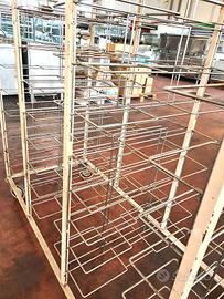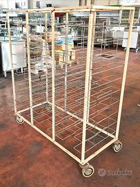 carrello triplo porta teglie usato, si tratta di un porta vassoi a tre vani in acciaio con 30 vani adatto per raccolta self-service di vassoi in mense, ristorazioni collettive o sagre. adatto anche per teglie GN1/1.