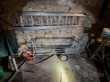 Carretta per piantini a 2 piani con una ruota bucata, il resto in perfette condizioni
