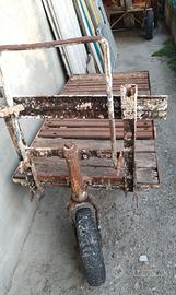 Carretto in ferro cm 160x80 con 3 ruote e pianale in legno cm 150x100 come in foto, per trasportare merce pesante vendo a Castelvetro Piacentino (PC)