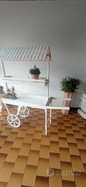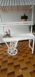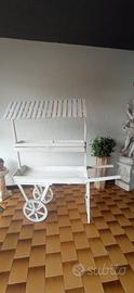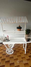 Vendo carretto il legno bianco in ottimo stato,dotato di tettoia spiovente,manici e ruote per lo spostamento.Ideale come elemento decorativo per giardini,negozi ecc.Dimensioni altezza 1,65, lunghezza totale 1,60.Euro80