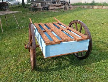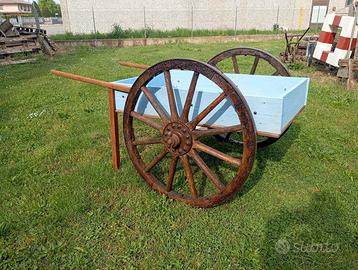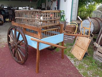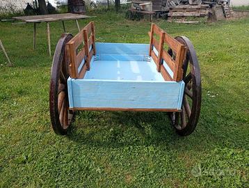 Carretto tutto in legno con ruote antiche resinate , Noleggio € 90,00 ( ritiro il Sabato pomeriggio entro le 18,00 e riconsegna il Lunedì . Vendita € 550,00 sponde laterali removibili per esporre o utilizzarle come base di appoggio , ideale per eventi , negozi di fiori o frutta e verdura , per esposizione di qualsiasi prodotto , misure massime di ingombro cm 180x140xh94 , si può smontare e rimontare facilmente posso anche spedire . Oppure visione e ritiro a Santa Margherita D'Adige Via Alessandro Volta 451 ( Borgo Veneto ) PD . Magazzino con orari , Lunedì solo il pomeriggio dalle 15:00 alle 19;00 previo appuntamento . Dal Martedì al Venerdì aperto 9,00-12,30 / 15,00-19,00 Sabato 9,00-12,30 / 15,00-18,00 Domenica e Festivi Chiuso Informazioni , altre foto , contattatemi pure anche su Whatsapp al 3270173200 Cristian . Grazie per l'attenzione !
