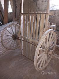 vecchio carretto in legno misure:L 230 cm H 87 cm LARG. 128 cm. CIRCA Pianale d'appoggio 120x76 cm Diametro ruote 80cm.