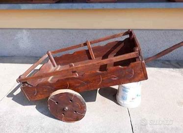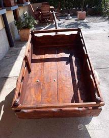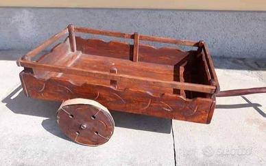 Vendo Carretto ornamentale, lavorato a mano in legno da artigiano falegname. Le ruote girano quindi si ha la possibilità di trainarlo per spostarlo. Le misure sono lunghezza 1,35m e larghezza 85cm. Pezzo unico.
