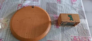 carretto siciliano+quadro sicilia in legno quadro rotondo diametro 21 cm carretto scatola 9x8x4.5 cm come da foto