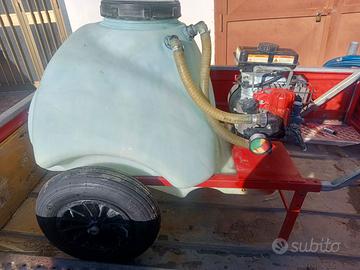 Vendo botte irroratrice da 120 litri con carriola. L'attrezzo è stato tenuto benissimo ed è perfettamente funzionante (ha lavorato poche volte). Motore a benzina che parte a primo colpo ed è dotato di un tubo completo di oltre 20 metri con lancia atomizzatrice compresa nel prezzo.