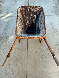 Carriola in ferro robusta con ruota in gomma, adatta per lavori di giardinaggio, anche per cantiere, piccolo foro sul fondo aggiustato con silicone, vendo a 40 euro. La carriola si trova a Castagnaro VR