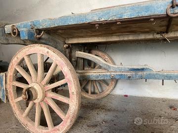 Vendo carro agricolo antico in legno completo di ruote originali. Il carro è ben conservato, ideale sia per collezionisti oppure come elemento decorativo per il giardino. Misure: - larghezza: 1.50 mt - lunghezza: 3.20 mt Prezzo: 500€