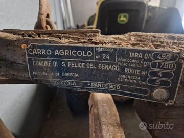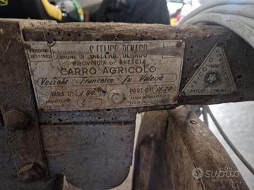 vendo carro carretto agricolo con certificato di revisione timbrati e attaccati 1956 ruote libera da restaurare