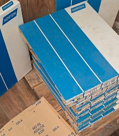 Confezioni da 50 fogli abrasivi per ogni scatola, marchio Norton leader nel settore dell'abrasione a livello professionale, grana 220, dimensioni 230 x 280 adatti per levigatura a secco di legno, metallo, carrozzeria o pareti. Vendo singole scatole o in blocco, no fogli singoli . Per singole scatole euro 30 cadauna - per tutte le scatole in blocco (11 scatole - euro 250
