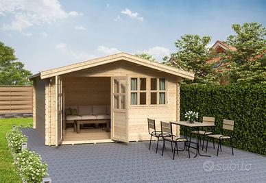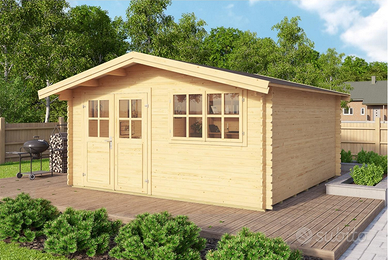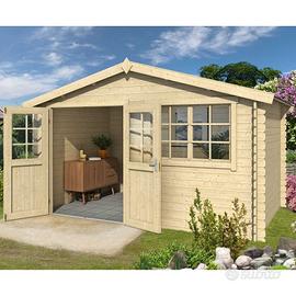 Casetta blockhouse solida, spaziosa ed elegante, ideale come ricovero attrezzi ,perfetta per biciclette attrezzi da giardino, ottima copertura.