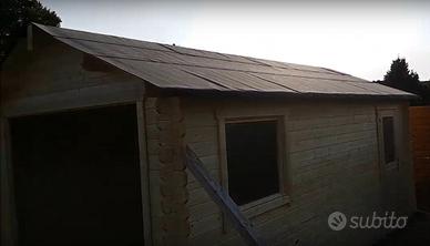 Il garage ha una costruzione molto robusta sistema ad incastro blockhaus, lo spessore maggiore garantisce maggiore solidità, durata, isolamento e comfort termico.