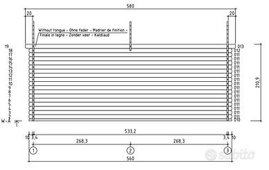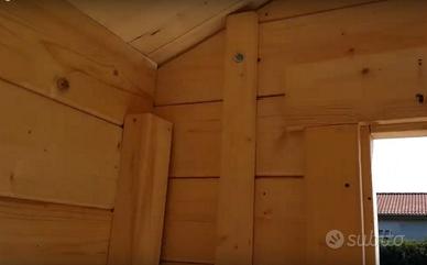 Pino nordico certificato. Spess. pareti 34 mm doppio incastro maschio/femmina.