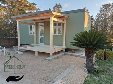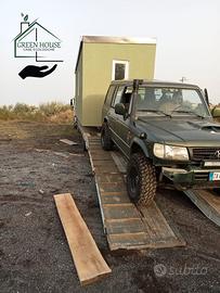 Casa mobile che può essere dotata di carrello omologato, il costo include la tettoia e la struttura chiavi in mano come da pianta e prospetto allegati, escluso dal prezzo trasporto e carrello.
