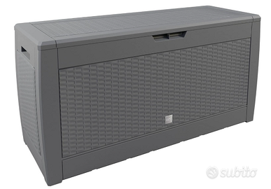 PRATICO: Il contenitore per attrezzi di CASARIA, realizzato in polipropilene di facile manutenzione con effetto polyrattan, offre un ottimo rapporto qualità-prezzo grazie alla lavorazione di alta qualità e al design elegante, per non rinunciare nè al comfort nè al gusto nell'arredamento.