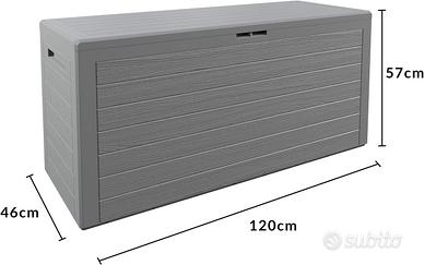 DESIGN: Woody, la cassapanca XXL di DEUBA, con i suoi 280 litri di capacità, offre spazio sufficiente per cuscini, imbottiture per mobili da giardino, attrezzi da giardino, accessori da giardino e molto altro. Vi conquisterà grazie al suo design elegante effetto legno. VERSATILE: grazie alle maniglie integrate e incassate sui lati, la box può essere facilmente posizionata o spostata in giardino, sul patio o sul balcone. Grazie al suo design accattivante, la cassapanca è perfetta anche per l'uso in interni come superficie di appoggio aggiuntiva. RESISTENTE ALLE INTEMPERIE: la Multibox per cuscini di alta qualità è realizzata in plastica resistente alle intemperie e ai raggi UV (polipropilene) e protegge i cuscini dal vento e dalle intemperie. Il materiale durevole e resistente agli agenti atmosferici rende il contenitora da giardino particolarmente facile da pulire e da manutenere. PROTEZIONE PERFETTA: grazie foro per la chiusura integrato, la cassapanca da giardino può essere facilmente chiusa con un lucchetto esterno. Il coperchio a cerniera della cassapanca è facile da aprire e chiudere. FACILE DA MONTAGGIARE: grazie all'intelligente sistema a innesto, assemblare la cassapanca da balcone è un gioco da ragazzi. Non sono necessari altri strumenti.