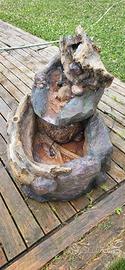 Cascata con laghetto composta da due pezzi in resina, finitura simil legno con 2 faretti led. Dimensioni alla base 100x60 cm ed un'altezza di 85 cm.