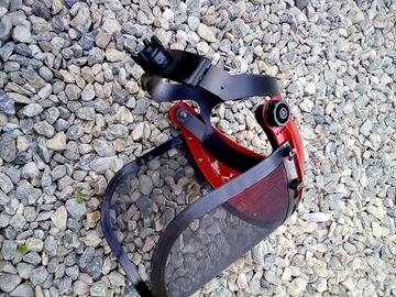 vendo causa doppione casco protettivo con visiera traforata per decespugliatore, articolo professionale. nuovo, mai usato.