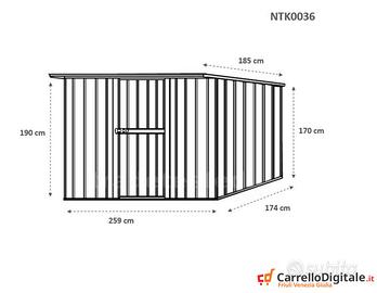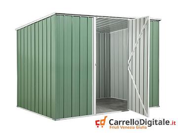 Box casetta 2.60 x 1.85 capanno in lamiera zincata da giardino o cantiere facile da montare grazie al manuale e il kit di montaggio comprensivo di tutta la ferramenta Casetta per attrezzi, prefabbricato in lamiera di Acciaio Zincata grecata perfetto per il giardino usato come capanno per ricovero rimessa attrezzi da giardinaggio o come riparo per bici e frese SPEDIZIONE IN TUTTA ITALIA INCLUSA NEL PREZZO * Dimensioni esterne (incluso tetto): 2.60 m (Larghezza) x 1.85 m (Lunghezza) x 1.92 m (Altezza) * Dimensioni esterne (solo perimetro): 2.59 m (Larghezza) x 1.74 m (Lunghezza) x 1.90 m (Altezza Max) * Dimensioni interne: 2.55 m (Larghezza) x 1.70 m (Lunghezza) x 1.90 m (Altezza Max) * Altezza della parete: 1.90 m * Metri Quadri: 4.81 mq * Peso struttura: 85 kg * Dimensioni porta anteriore: 0.83 m (Larghezza) x 1,85 m (Altezza) * Spessore pannelli: 0,32 mm * Spessore profili: 0,70 mm Telefono/Whatsapp: A soli 389 euro IVA, spedizione ed assicurazione sulla spedizione inclusi nel prezzo Possibilita' di acquisto con pagamento alla consegna (SOLO CONTANTI, no assegni) Attenzione, il metallo utilizzato non e' ferro o alluminio ma acciaio zincato La casetta zincata in questione non e' coibentata (pannelli sandwich) ma puo' essere modificata facilmente e con una spesa minima Il capanno in lamiera e' composto da profili e pannelli in acciaio zincato e verniciato (no ferro) in modo da resistere alle intemperie Telefono/Whatsapp: