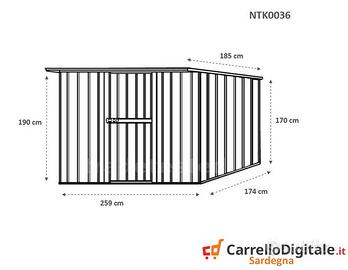 Box casetta 2.60 x 1.85 capanno in lamiera zincata da giardino o cantiere facile da montare grazie al manuale e il kit di montaggio comprensivo di tutta la ferramenta Casetta per attrezzi, prefabbricato in lamiera di Acciaio Zincata grecata perfetto per il giardino usato come capanno per ricovero rimessa attrezzi da giardinaggio o come riparo per bici e frese SPEDIZIONE IN TUTTA ITALIA INCLUSA NEL PREZZO * Dimensioni esterne (incluso tetto): 2.60 m (Larghezza) x 1.85 m (Lunghezza) x 1.92 m (Altezza) * Dimensioni esterne (solo perimetro): 2.59 m (Larghezza) x 1.74 m (Lunghezza) x 1.90 m (Altezza Max) * Dimensioni interne: 2.55 m (Larghezza) x 1.70 m (Lunghezza) x 1.90 m (Altezza Max) * Altezza della parete: 1.90 m * Metri Quadri: 4.81 mq * Peso struttura: 85 kg * Dimensioni porta anteriore: 0.83 m (Larghezza) x 1,85 m (Altezza) * Spessore pannelli: 0,32 mm * Spessore profili: 0,70 mm Telefono/Whatsapp: A soli 412 euro IVA, spedizione ed assicurazione sulla spedizione inclusi nel prezzo Possibilita' di acquisto con pagamento alla consegna (SOLO CONTANTI, no assegni) Attenzione, il metallo utilizzato non e' ferro o alluminio ma acciaio zincato La casetta zincata in questione non e' coibentata (pannelli sandwich) ma puo' essere modificata facilmente e con una spesa minima Il capanno in lamiera e' composto da profili e pannelli in acciaio zincato e verniciato (no ferro) in modo da resistere alle intemperie Telefono/Whatsapp:
