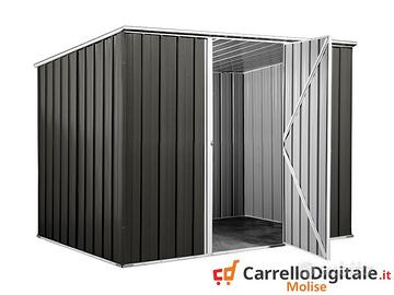 Box casetta 2.60 x 1.85 capanno in lamiera zincata da giardino o cantiere facile da montare grazie al manuale e il kit di montaggio comprensivo di tutta la ferramenta Casetta per attrezzi, prefabbricato in lamiera di Acciaio Zincata grecata perfetto per il giardino usato come capanno per ricovero rimessa attrezzi da giardinaggio o come riparo per bici e frese SPEDIZIONE IN TUTTA ITALIA INCLUSA NEL PREZZO * Dimensioni esterne (incluso tetto): 2.60 m (Larghezza) x 1.85 m (Lunghezza) x 1.92 m (Altezza) * Dimensioni esterne (solo perimetro): 2.59 m (Larghezza) x 1.74 m (Lunghezza) x 1.90 m (Altezza Max) * Dimensioni interne: 2.55 m (Larghezza) x 1.70 m (Lunghezza) x 1.90 m (Altezza Max) * Altezza della parete: 1.90 m * Metri Quadri: 4.81 mq * Peso struttura: 85 kg * Dimensioni porta anteriore: 0.83 m (Larghezza) x 1,85 m (Altezza) * Spessore pannelli: 0,32 mm * Spessore profili: 0,70 mm Telefono/Whatsapp: A soli 389 euro IVA, spedizione ed assicurazione sulla spedizione inclusi nel prezzo Possibilita' di acquisto con pagamento alla consegna (SOLO CONTANTI, no assegni) Attenzione, il metallo utilizzato non e' ferro o alluminio ma acciaio zincato La casetta zincata in questione non e' coibentata (pannelli sandwich) ma puo' essere modificata facilmente e con una spesa minima Il capanno in lamiera e' composto da profili e pannelli in acciaio zincato e verniciato (no ferro) in modo da resistere alle intemperie Telefono/Whatsapp:
