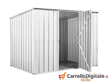 Box casetta 2.60 x 1.85 capanno in lamiera zincata da giardino o cantiere facile da montare grazie al manuale e il kit di montaggio comprensivo di tutta la ferramenta Casetta per attrezzi, prefabbricato in lamiera di Acciaio Zincata grecata perfetto per il giardino usato come capanno per ricovero rimessa attrezzi da giardinaggio o come riparo per bici e frese SPEDIZIONE IN TUTTA ITALIA INCLUSA NEL PREZZO * Dimensioni esterne (incluso tetto): 2.60 m (Larghezza) x 1.85 m (Lunghezza) x 1.92 m (Altezza) * Dimensioni esterne (solo perimetro): 2.59 m (Larghezza) x 1.74 m (Lunghezza) x 1.90 m (Altezza Max) * Dimensioni interne: 2.55 m (Larghezza) x 1.70 m (Lunghezza) x 1.90 m (Altezza Max) * Altezza della parete: 1.90 m * Metri Quadri: 4.81 mq * Peso struttura: 85 kg * Dimensioni porta anteriore: 0.83 m (Larghezza) x 1,85 m (Altezza) * Spessore pannelli: 0,32 mm * Spessore profili: 0,70 mm Telefono/Whatsapp: A soli 412 euro IVA, spedizione ed assicurazione sulla spedizione inclusi nel prezzo Possibilita' di acquisto con pagamento alla consegna (SOLO CONTANTI, no assegni) Attenzione, il metallo utilizzato non e' ferro o alluminio ma acciaio zincato La casetta zincata in questione non e' coibentata (pannelli sandwich) ma puo' essere modificata facilmente e con una spesa minima Il capanno in lamiera e' composto da profili e pannelli in acciaio zincato e verniciato (no ferro) in modo da resistere alle intemperie Telefono/Whatsapp: