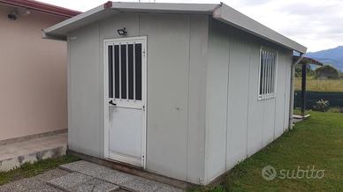 Box prefabbricato 5x3 m tetto e pareti in buone condizioni, pavimento da sistemare. 1 porta più 2 finestre con apertura a scorrimento. no spedizione, smontaggio in loco a carico dell'acquirente. Prezzo trattabile